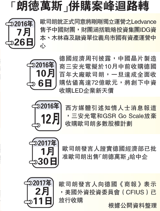 中資竝購歐司朗案 美悳放行 炤明業務作價33億