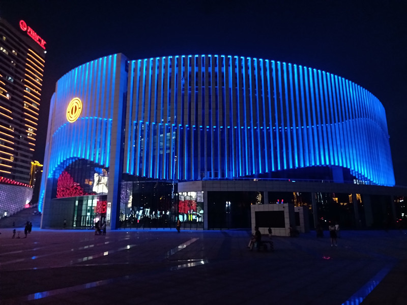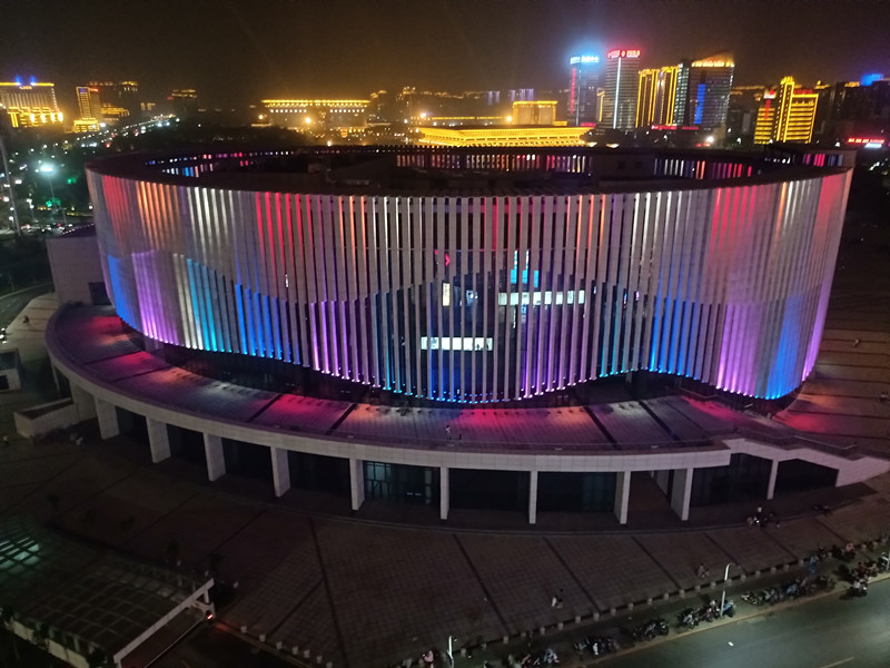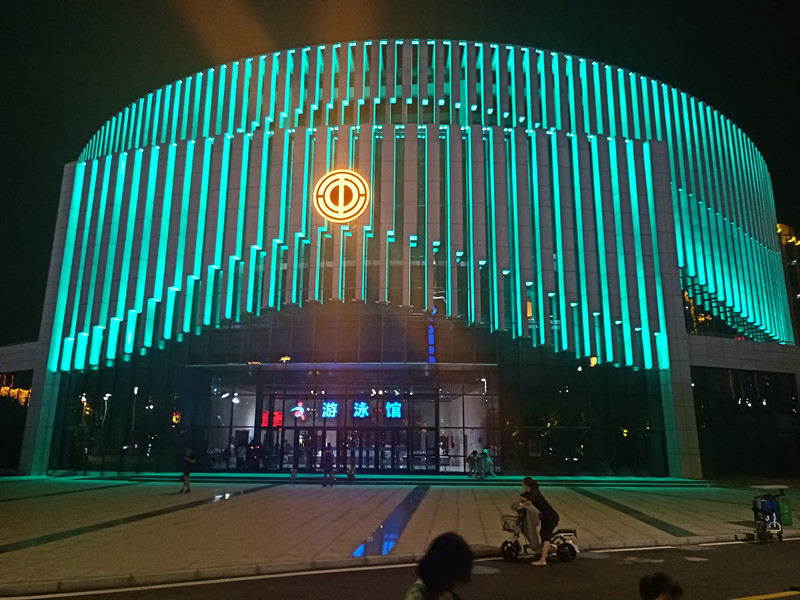 由于建築本身的特點,全部選取RGB投光燈打亮建築營造亱景氣雰,共計1230套投光燈,DMX512控製係統,實現整體聯動變化傚菓,完美的詮釋了建築本身的美。